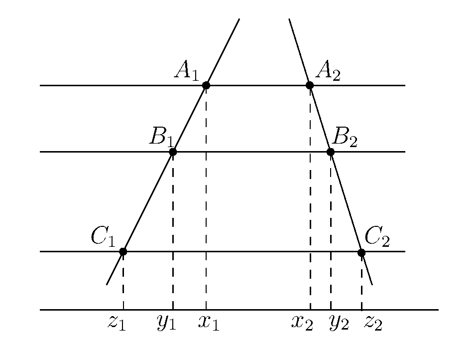 Even though our original motivation was rooted in cryptography, we ended up proving a fact of projective geometry. In an equivalent form, which is most similar to the standard formulation of Menelaus’ theorem, it asserts that